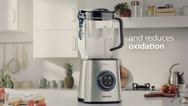 *필립스 HR3752에서 진공 기능을 사용하지 않고 블렌딩했을 때와 비교 시, 2017년 11월/12월 독립적인 실험실에서 토마토로 테스트를 수행한 결과